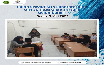 Medan – Madrasah Tsanawiyah (MTs) Laboratorium Universitas Islam Negeri Sumatera Utara (UIN SU) Medan menggelar Ujian Tes Akademik dan Tes Baca